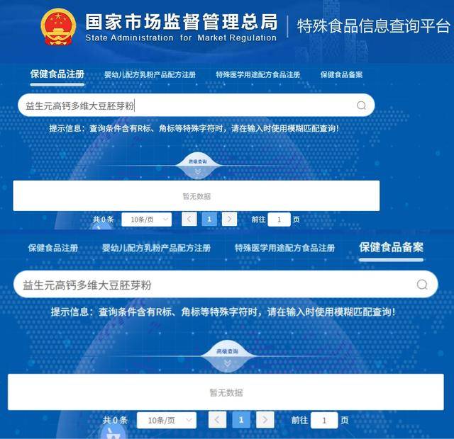 值得注意的是,在国家市场监督管理总局特殊食品信息查询平台上,记者并未查找到关于“益生元高钙多维大豆胚芽粉”的保健食品注册及备案信息。这意味着,该款被隆力奇官网标注为保健品的产品实则为普通食品。