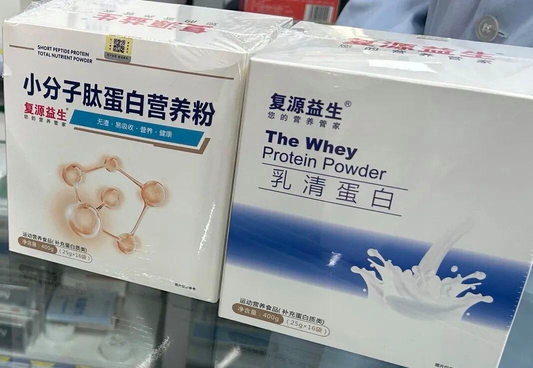 报道中涉及的药店是曾位于西安市长乐西路的“怀仁堂药房”。大风新闻记者暗访调查发现,该药房从安徽凯洪药业有限公司定制生产“复源益生”牌纯乳清蛋白粉和短肽蛋白全营养粉,且药店后台有信息可查,自2023年1月起,这两款蛋白粉便采购入库、对外售卖。
