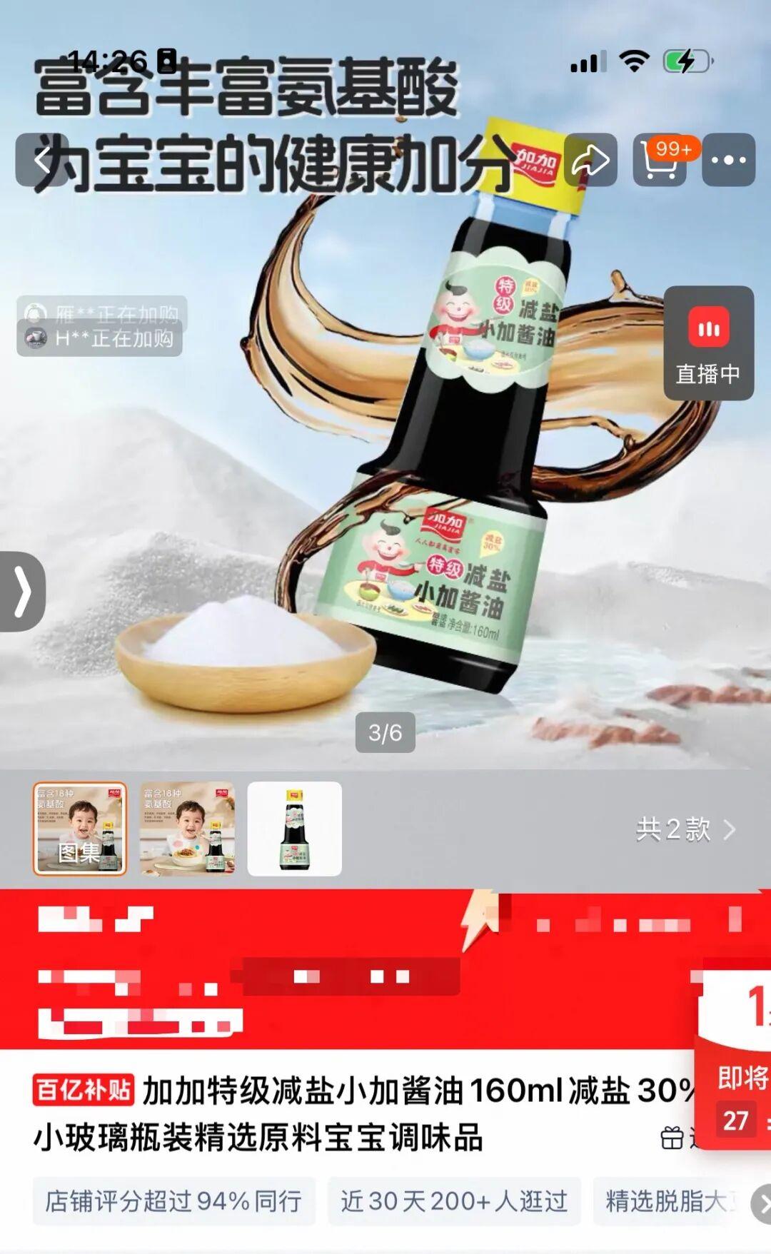▲加加特级减盐小加酱油在电商平台以“宝宝调味品”进行宣传