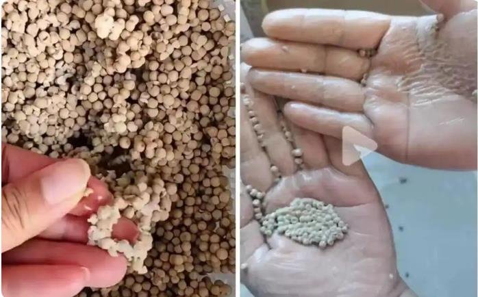 社交平台网友晒出买到的假胡椒粒,水洗后可搓出面粉质地的泥。图/社交平台截图