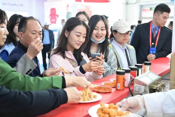 禽产品展区,双汇优选鸡调理系列中的鸡米花、香酥鸡块、香煎鸡排、小酥肉等产品持续进行现场炸制。金黄色的鸡米花、小酥肉香气扑鼻,观众纷纷上前品评。“用空气炸锅可以吗?”“能冷冻保存多久?”工作人员一边制作一边解答提问,产品便捷性与口感赢得观众一致认可。