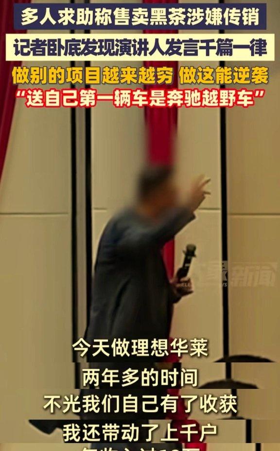 表面上卖黑茶直销,实际就是拉人头传销:交2.8万入门费,靠拉下线拿提成。茶叶根本就是个幌子。洗脑课上,讲师天天吹别墅、豪车、年入百万。