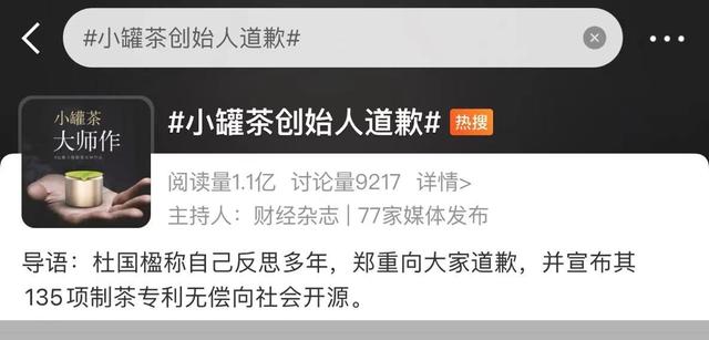 6月26日,“小罐茶创始人道歉”相关话题登上微博热搜,阅读量超过1亿。记者注意到,前一天在安徽黄山举行的“一场透明的发布会”上,小罐茶创始人杜国楹回应长期来的“大师作”争议,现场鞠躬并表示“抱歉”。同时杜国楹宣布,对全线产品进行公证保真,建立可追溯的机制。 业内人士指出,要想真正解决高端茶行业的价格不透明、品控乱象等问题,需要从监管、市场、企业等层面共同努力。 ![]() 不再宣传“大师作” 据多家媒体报道,6月25日,在小罐茶12周年发布会上,杜国楹回顾了小罐茶从创立至今的历程,在反思时称,“虽然五年已经过去了,但是这份歉意还是一直在的,当年的‘大师作’如果给你造成误导,我表示深深的歉意”。随后,杜国楹发布小罐茶新战略,并宣布将不再使用“大师作”作为宣传点,而是将重点转移到产品品质提升和服务优化上。 小罐茶官网显示,其创立于2014年,是互联网思维、体验经济下应运而生的一家现代茶商。其品牌Slogan“小罐茶,大师作”耳熟能详。 早在2019年,就有网友针对“大师作”提出了质疑,称“8位制茶大师手工制作,一个大师一年炒了2.5亿的茶,平均每位大师一天要炒1466斤鲜茶叶,小罐茶的大师累不累”。 对此,小罐茶公开回复称,“大师作”指的是代表大师技艺的作品,并非大师手工去炒茶。作为小罐茶各个茶叶品类的“首席产品经理”,制茶大师们与小罐茶共同制定茶叶产品标准,严格把关原料采摘和生产过程。而更多的苦活、累活正在逐步交给现代化的制茶设备去解决。 康德智库专家、上海市光明律师事务所律师付永生表示,小罐茶对“大师作”的解释是指代表大师技艺的作品,而非纯手工炒制,这一解释有助于澄清市场上的误解,但显然并未完全消除公众的疑虑。从商业道德和法律法规的角度来看,任何产品或服务的宣传都应真实、准确,避免误导消费者。如果“大师作”的宣传确实给消费者带来了误解,那么小罐茶此次的调整可以被视为一种积极的纠正措施。 北京商报记者注意到,目前在小罐茶官网上,品牌名称下面标识的是“高端中国茶”,不过其公司介绍页面仍在宣传“小罐茶,大师作”。 公开信息显示,小罐茶此前已注册多枚“小罐大师”“小罐茶·大师作”“大师手工”“大师手功”商标。值得一提的是,今年1月,小罐茶再次申请注册一枚“大师手工”商标,国际分类为方便食品,到4月,该商标流程信息已变更为“驳回通知发文”。 定价过高引争议 在小罐茶天猫旗舰店,在售的产品价格从几十元到数万元不等,最便宜的尝鲜装售价59元,净含量只有8克,包含4种口味;最贵的年迹经典款纪念版售价24200元,净含量10千克,茶系为云南普洱茶,目前仅有1人付款。 在《详谈》一书中,杜国楹描述了小罐茶的定价过程,“最早做有机茶的时候,我们判断要卖到每斤3000元左右,小罐茶做出来之后,是24罐一条,卖1000元,算下来大概5000元一斤。最早其实并没有想定这么高,是因为成本出来之后发现不行”。 2022年,在小罐茶十周年大会上,杜国楹否定小罐茶是“智商税”,并连发三个新品,从最初的形象“小罐茶”演变成袋装形态的“茶几味”以及茶饼形态的“年迹”,价格更加亲民。据了解,目前“茶几味”系列的售价约139元/盒,分40克装和50克装两种规格,约为普通金罐装的20%—25%。 除茶叶定价过高外,消费者关注的焦点也在产品质量上。2024年6月26日,小罐茶宣布即日起对旗下全线产品进行公证保真,并将公开135项制茶专利,向社会全面开源。杜国楹表示,产品全线保真后,消费者只需要通过手机NFC贴近或扫描二维码的方式,即可获取小罐茶产品的全流程信息。 厦门市云尚公证处执行主任叶科展对此次公证作出说明,“公证处为小罐茶办理公证的过程中,采用的是全流程公证,公证员通过全流程的跟踪,实时拍摄和登记记录,把茶叶采收、加工、封装和检验检测过程记录下来,最终能够证明茶叶的品种、年份、工艺等方面没有造假行为,保证产品生产过程中的真实性”。 在君智战略咨询行业部总经理陈方超看来,小罐茶此次推出“敢保真”战略及开源专利核心目标有二。首先此前“大师作”被扣上过度营销拉高价的帽子,购买送礼多自饮少,贴上礼品属性会使消费黏性低致发展规模受限。此次诉求“敢保真”既对接放心送礼需求,又可解决自饮不知道怎么选的难题。其次,茶行业多为货品化,有品类无品牌,小罐茶通过近年来的强营销已在消费者端初步建立品牌认知,此次开源更将自己放在领导者位置,通过引领行业发展的方式进一步强化其品牌影响力。 奥优国际董事长张玥认为,小罐茶这次宣布不再宣传“大师作”,并对产品公证保真,这是一种积极的态度和行动,表明正致力于提高产品的品质和真实性,同时也希望通过公开专利技术,促进茶叶行业的技术创新和竞争。 价格不透明、品控乱象待解 小罐茶开源专利、产品保真的背后,是高端茶价格不透明、品控难控的行业乱象。 国家层面对茶叶的产品标准有明确规定。2023年9月25日,国家卫健委官网发布公告称,根据《食品安全法》规定,国家卫生健康委、市场监管总局联合印发2023年第6号公告,发布85项新食品安全国家标准和3项修改单。其中包括《食品安全国家标准 茶叶》(GB 31608-2023)等3项食品产品标准。《食品安全国家标准 茶叶》(GB 31608-2023)规定了“茶鲜叶”和“茶叶”的
