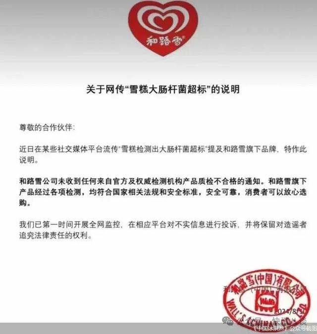 正值冷饮销售旺季,有媒体报道,各地监管部门近半年质量抽检情况,雪糕抽检不合格的样品中,大肠菌群的不合格占比五成,引发网友对食品安全的担忧。对此,联合利华旗下品牌和路雪等品牌紧急回应。 在食品检测中,大肠菌群的检测是一个重要的卫生指标,但也不必“谈菌色变”。即使是大肠菌群之一的大肠杆菌也是“千菌千面”,大多数大肠杆菌属于正常寄居菌,只有很小一部分在一定条件下可引起疾病,如引起腹泻和炎症等。有食品行业专家表示,“大肠菌群是卫生学指示菌,并非致病菌,和健康危害没什么必然联系”。 ![]() 上半年多个雪糕品牌抽检不合格 近日,根据“消费者报道”的报道,整理了国家市场监督管理总局及省市级市场监督管理局于2024年近半年(1-7月)公布的关于雪糕、冰棍等冷冻饮品的质量抽检情况。结果显示,各地监管部门抽检发现不合格产品共11批次,从项目看,雪糕、冰棍不合格集中在大肠菌群、蛋白质、菌落总数三项,其中大肠菌群不合格占比五成。 记者查阅相关信息发现,“消费者报道”中提及抽检不合格的样品中,涉及品牌商标包括“老华头”“东三雪”“云一雪”“冰辻”等。 2024年6月13日,海南省市场监督管理局发布的抽检结果显示,标称商标为“云一雪”、标称生产企业名称为“德保县云雪冷冻食品有限公司”、被抽样单位名称为“陵水英州符记冰淇淋店”、规格型号为“65g/支”、生产日期/批号为“2024-01-08”的一款“炫酷(雪糕)”,被检出“蛋白质、大肠菌群”项目不合格。 2024年7月26日,上海市青浦区市场监督管理局发布的抽检结果显示,标称商标为“冰辻”、标称生产企业名称为“浙江冰富生物科技有限公司”、被抽样单位名称为“上海福满家便利有限公司清河湾路店”、规格型号为“66克/袋”、生产日期/批号为“2024-04-25”的一款“冰蓝生打椰雪糕”,被检出“大肠菌群”项目不合格。 2024年7月23日,黑龙江市场监督管理局发布的抽检结果显示,标称商标为“老华头和图形”、标称生产企业名称为“鸡西市恒山区德晟冷冻食品厂”、被抽样单位名称为“哈尔滨市依兰县万联生活购物广场亿达店”、规格型号为“78克/袋”、生产日期/批号为“2023/8/15”的一款俄罗斯小白熊解馋冰奶(冰棍),被检出“大肠菌群”项目不合格。经辖区市场监管部门调查核实,该批次不合格原因为哈尔滨市依兰县万联生活购物广场亿达店储存不当造成。 2024年8月6日,黑龙江市场监督管理局发布的抽检结果显示,标称商标为“东三雪和字母”、标称生产企业名称为“双鸭山市集贤县东三雪食品加工厂”、被抽样单位名称为“佳木斯市郊区俊梅连锁超市西郊华城店”、规格型号为“62克/袋”、生产日期/批号为“2023/8/22”的一款“美国提子(雪糕)”,被检出“大肠菌群”项目不合格。 据了解,大肠菌群项目不合格是造成雪糕不合格的常见原因。根据《食品安全国家标准 冷冻饮品和制作料 GB 2759-2015》的标准要求“大肠菌群n=5,c=2,m=10 ,M=10²”,也就是说,雪糕中的大肠菌群最高不得超过100 CFU/g,同批次样品的5平行中至少有3平行样品检出的大肠菌群不超过10 CFU/g。 冷饮品牌紧急回应 8月14日,记者获悉,联合利华旗下品牌和路雪在向合作伙伴回应中表示,“近日在某些社交媒体平台流传‘雪糕检测出大肠杆菌超标’提及和路雪旗下品牌,特作此说明。和路雪公司未收到任何来自官方及权威检测机构产品质检不合格的通知。和路雪旗下产品经过各项检测,均符合国家相关法规和安全标准,安全可靠,消费者可以放心选购”。 同时,伊利冷饮事业部也对内发布声明,“近日在某些社交媒体平台流传‘雪糕检测出大肠菌群超标’提及伊利集团冷饮事业部旗下巧乐兹、小布丁等产品的网传信息为不实信息,特作如下说明。我司未收到任何来自官方及权威检测机构产品质检不合格的通知,所有产品严格按照国家食品安全标准进行生产,并且可以提供每批次检测报告,安全无忧,消费者可以放心购买食用”。 记者注意到,冷饮不合格也并非都是生产端的问题,如在7月23日,黑龙江市场监督管理局的通报结果中,1批次“老华头和图形”被检出“大肠菌群”项目不合格,但经辖区市场监管部门调查核实,该批次不合格原因为哈尔滨市依兰县万联生活购物广场亿达店储存不当造成。 对于雪糕中检出“大肠菌群”不合格,有部分网友称“等于吃‘冰冻便便’”。对此,中国食品产业分析师朱丹蓬表示,“大肠杆菌并不是说在便便里面特有的一种细菌,它在很多地方或者环境下都可以生存,现在比较常见的就两种,大肠杆菌和沙门氏菌。如果在冰淇淋里面出现这样的病菌,应该是在原料及消毒的过程中出现了问题,也就是整个质量内控体系存纰漏,才会让大肠杆菌有可乘之机。目前来说,中国的食品安全水平还是不错的,但这一类(病菌)一定要严控”。 科信食品与健康信息交流中心主任钟凯向北京商报记者表示,“大肠菌群和大肠杆菌都是卫生学指示菌,并非致病菌。大肠杆菌是大肠菌群的一部分”。 据了解,大肠菌群是国内外通用的食品污染常用指示菌之一。食品中检出大肠菌群,提示有被致病菌(如沙门菌、志贺菌、致病性大肠杆菌)污染的可能性比较大。大肠菌群主要包括肠杆菌科中埃希氏菌属、柠檬酸杆菌属、克雷伯氏菌属和肠杆菌属。 冷冻饮品不合格率有